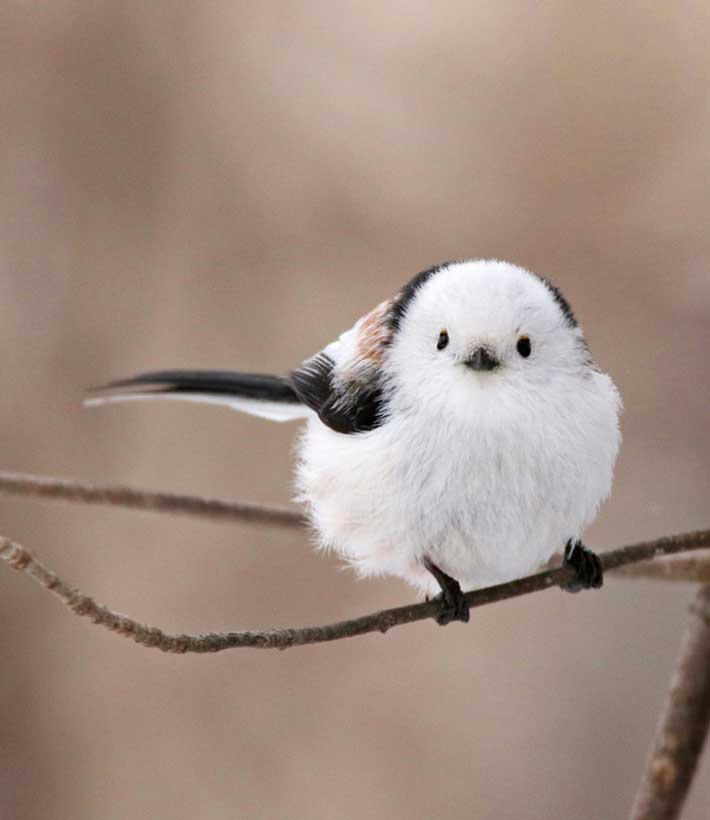 その愛らしい姿から、雪の妖精とも称されるシマエナガ。