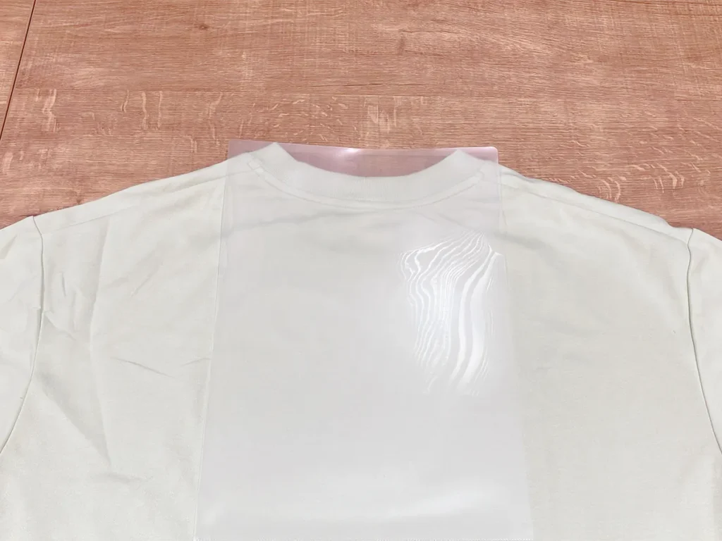 最後に、Tシャツにクリアファイルを仕込んだまま、もう1つのクリアファイルで挟めばできあがり!