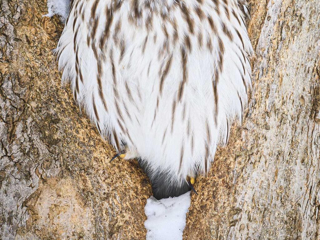 Takさんによると、こちらの写真は2024年1月に撮影したものとのこと。撮影時間は午前中だったため、エゾフクロウは気持ちよさそうに寝ていたといいます。