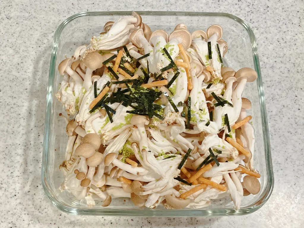 エノキ2袋を使って? 味つけは『お茶づけ海苔』だけの“ズボラ飯”レシピ