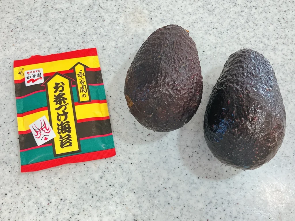 アボカド以外には、『お茶づけ海苔』と相性がよさそうなワカメを使いましたよ。