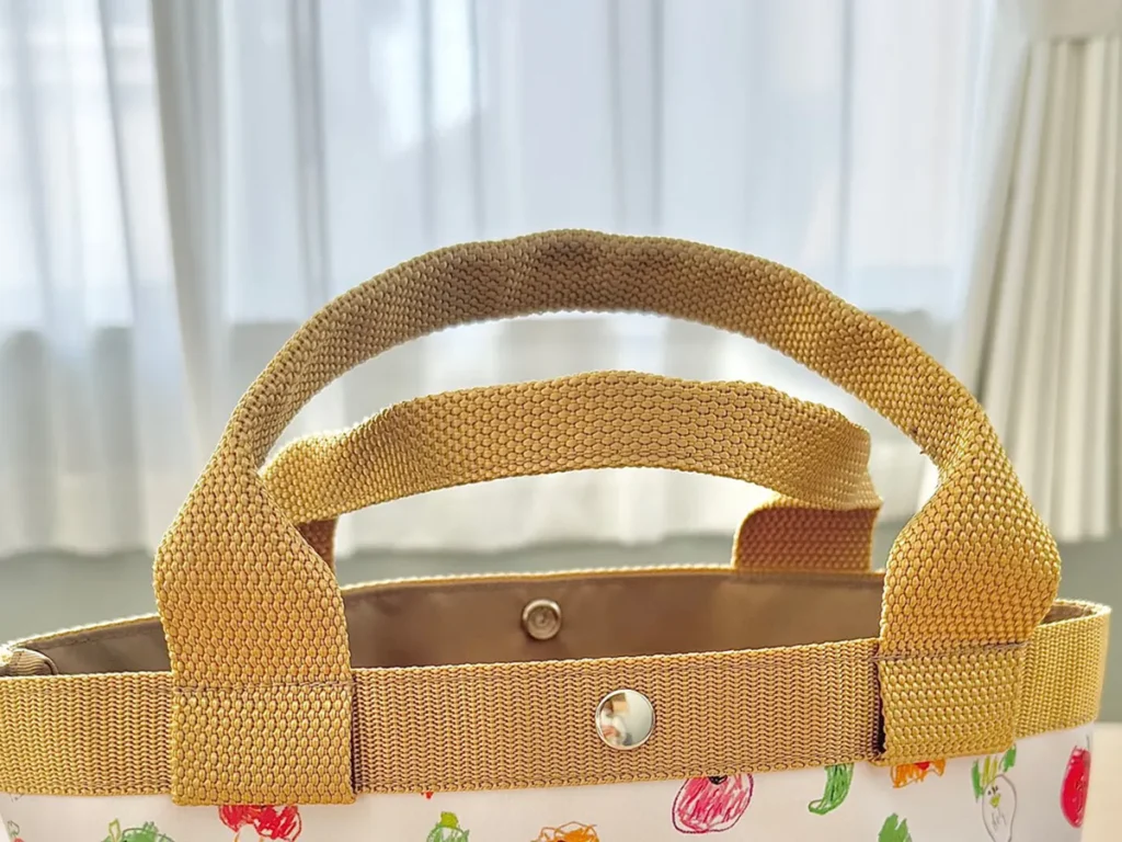 カラフルな野菜の色合いが映えるバッグは、実際に売られていてもおかしくないくらい、オシャレですね!