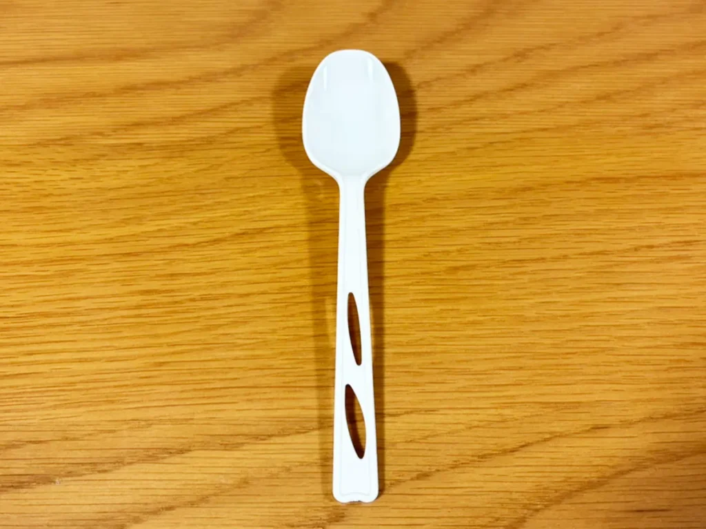 スプーンの持ち手に穴を開けることで、プラスチック使用量を年間で約675トン削減することができているそうです!